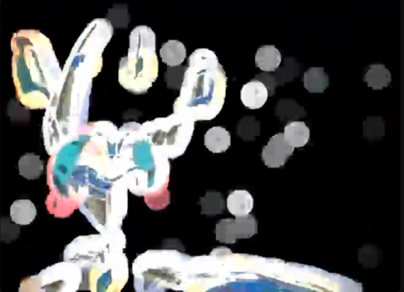 a frame from Round 2 of djninjalovemistake vs. AshcrementVII(2011), depicting the titular Gunbuster mech in action applied with layer compositing effects